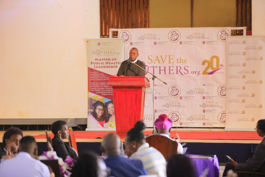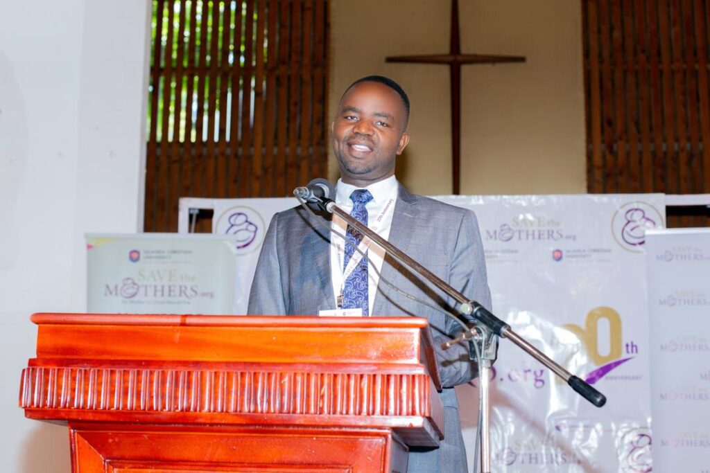 Dr. Nsubuga Mushin, Executive Director, Save the Mothers EA – highlighting a 20-year journey of training over 500 professionals through the Master of Public Health Leadership offered in collaboration with Uganda Christian University, and implementing the Mother Baby Friendly Hospital Initiative in 15 hospitals in Uganda to promote safe deliveries, dignity and respect in maternity care